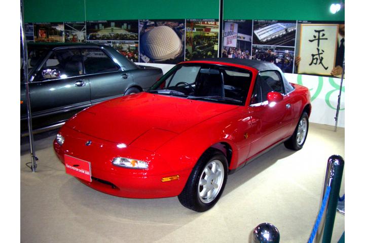 1989年9月、ユーノス店専売モデルとして 発売されたユーノス・ロードスター 。北米を中心に世界中で大反響を呼び、欧州の主要メーカーが同様のロードスターを出すきっかけとなったという。1998年にフルモデルチェンジ、名称もマツダ・ロードスターに変更され、2005年に3代目に移行した。