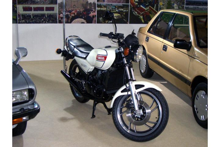 1980年に発売された初代RZ250。水冷2ストローク並列2気筒のエンジンは、当時の250ccでは最高出力の35psを誇り、当時の「水冷ユニットは重い」という概念を打ち破って140kgを切るまでに軽量化され、モノクロスサスなどレーサー然とした外見も相まって一躍ベストセラーとなった。