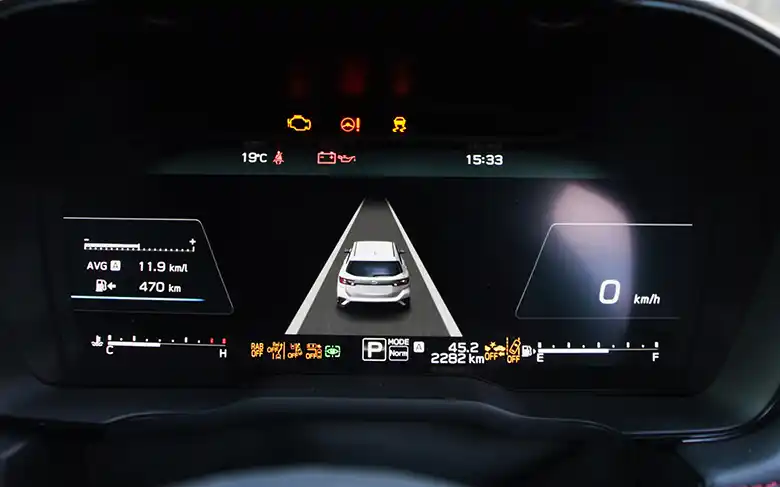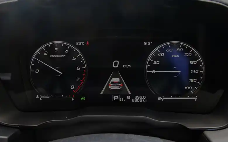 アイサイトXを搭載したモデルは、12.3インチのフル液晶メーターを装備している。運転操作に必要な情報やアイサイトXの作動状態が大きく、グラフィカルに表示される。運転中も瞬時に必要な情報を認識可能だ。