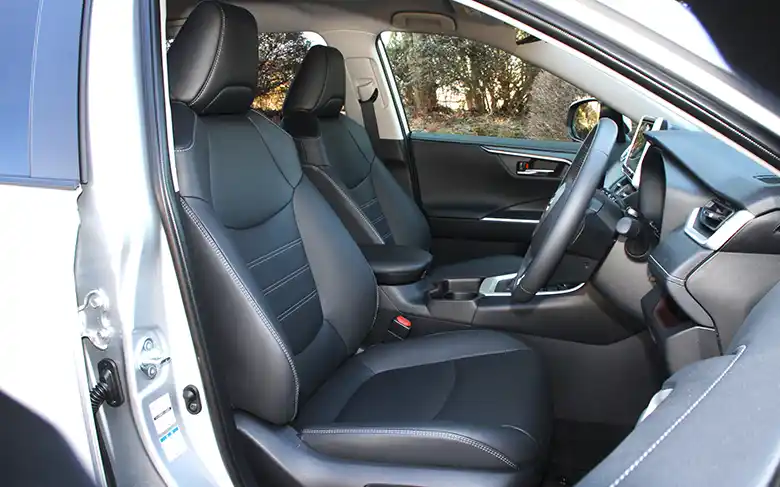 一方、RAV4も10.5インチのディスプレイオーディオ(コネクテッドナビ対応)PlusとETC2.0ユニットを標準装備。合成皮革のシートは運転席のみパワーシートが標準装備となるが、運転席および助手席には快適温熱シートとシートベンチレーションを搭載。利便性の面では、ハンズフリーパワーバックドア(挟み込み防止機能・停止位置メモリー機能付き)が標準装備される。ただし、ワイヤレス充電器(おくだけ充電)は13,200円のオプション設定だ。