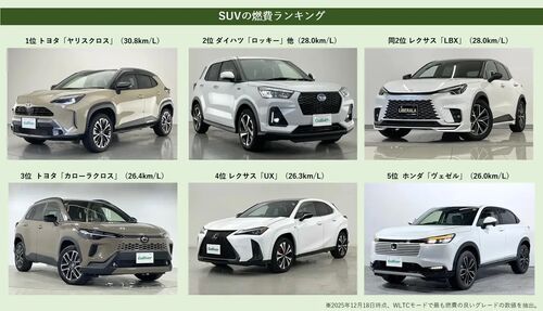 ここでは、2026年最新の国産SUV燃費ランキングに加え、サイズ別や外車などのSUV燃費ランキングをご紹介しています。新車時価格や中古車相場、サイズ、人気度(新車販売台数ランキング)の情報を入れているほか、低燃費のおすすめSUVや選び方のポイントもご紹…