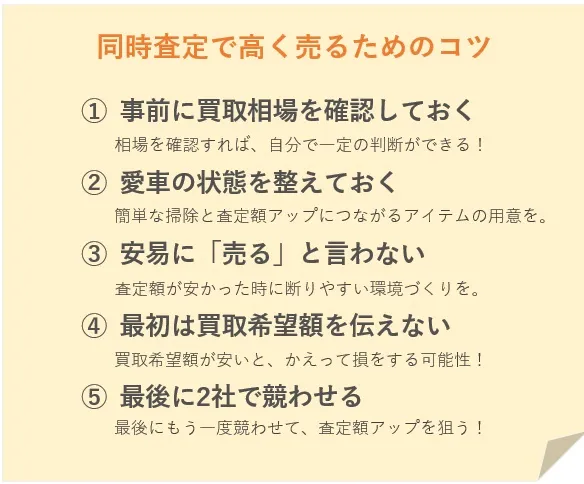 同時査定で車を高く売るためのコツ