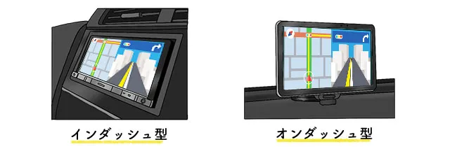 カーナビには大きく分けて「インダッシュ型」「オンダッシュ型」の2種類が存在します。