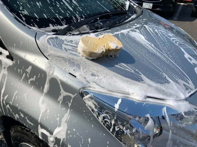 しっかり水洗いをしたら、シャンプーでボディを洗います。付着物が残っている場合、強い力で擦ればキズの原因になります。そのためシャンプー液をしっかり泡立て、且つスポンジや柔らかい素材のブラシで撫でるように洗うのがポイントです。