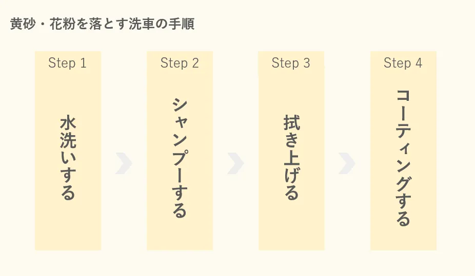 成分などが異なる黄砂と花粉ですが、落とし方は共通して「洗車」です。