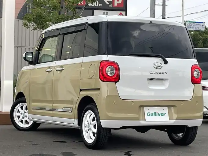 令和4年式(2022年式) ダイハツ ムーヴキャンバス ストライプスGターボ2万9千kmシャイニングホワイトパール/サンドベージュメタリック入荷いたしました☆