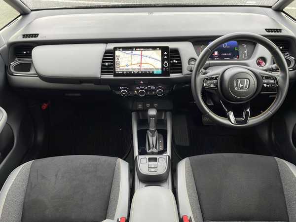 e:HEV(ハイブリッド)/FF/MTモード付フロアCVT/純正 Honda Connect対応 9インチナビ/(FM/AM/USB/Bluetooth/TV/CarPlay/AndroidAuto)/バックカメラ/ドライブレコーダー 前後/ビルトイン ETC2.0/Honda SENSING/・衝突軽減ブレーキ[CMBS]/・車線維持支援システム[LKAS]/・アダプティブクルーズコントロール[ACC]/・路外逸脱抑制機能/・先行車発進お知らせ機能/・標識認識機能/・踏み間違い衝突軽減システム/・パーキングセンサーシステム(前後)/・オートハイビーム機能/装備/・ハーフレザーシート/・パドルシフト/・オートエアコン/・オートライト/・LEDヘッドライト/・電子パーキングブレーキ/・ブレーキホールド機能/・ステアリングスイッチ/・プッシュスタート/・USBジャック(充電x1+2、入力x1)/・後席チップアップ機能/・電動格納ドアミラー/・革巻きステアリング(ゴールドステッチ入)/・純正 16inAW/・保/取/ナビ取/・スマートキーx2