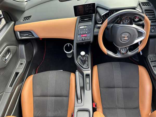 ワンオーナー車両/純正ディスプレイオーディオ(AM、FM、ハンズフリー)/バックカメラ/プッシュスタート/6MT/HDMI/革巻きステアリング/ステアリングリモコン/電動調整ミラー/茶革ハーフレザーシート/クルーズコントロール/オートライト/横滑り防止機能/ETC/無限フロアマット/無限ハードトップ/ソフトトップ(車載)/HKSマフラー/純正マフラー(車載)/スペアキー/取扱説明書/保証書