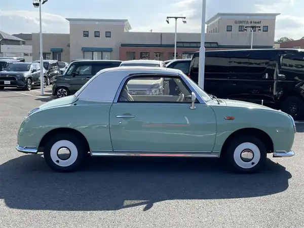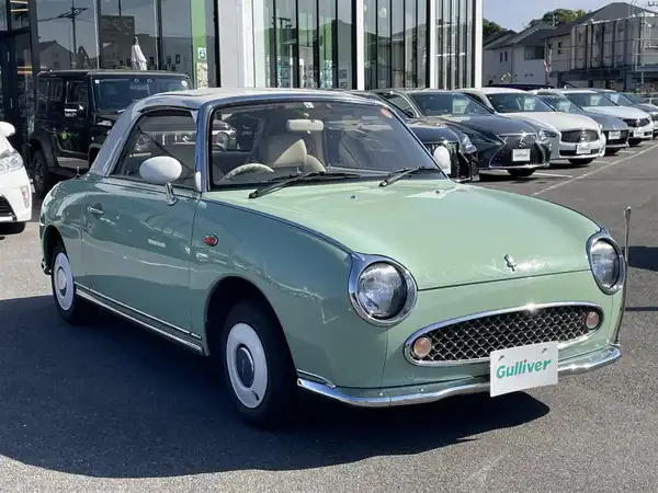 私の愛車はフィガロのオープントップタイプです。中古車で購入して7年、製造されてから20年以上…けれど今も元気に頑張っています。外車のような旧車のような雰囲気で運転しているとタイムスリップしてしまったような気分になれる車です。天気が良い日にはオープンにして風を感じながら走ると大変贅沢な気分にさせてくれます。ボディーはヘッドライトもテールライトも丸を基本に作られていて愛らしい印象ですし、内装も革シートに丸いハンドル、丸いメーターとレトロ感満載です。さすがにシートの痛みは多少気になりますがまた問題になるほどではありません。年式が古いので燃費は良くないし、点検も欠かせませんがいまだ手放す気は全く沸いてこないほど良い車です。