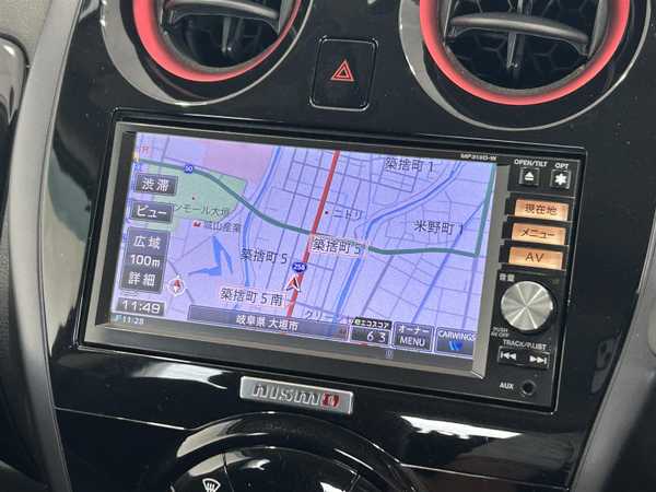 純正SDナビ(フルセグTV・Bluetooth・CD・USB) /バックカメラ /横滑り防止装置/革巻きステアリング/LEDヘッドライト /デイライト/リアフォグランプ /ETC /アイドリングストップ /nismo専用シート/純正フロアマット /純正16インチアルミホイール /ドアバイザー/オートライト/スマートキー×2/プッシュスタート
