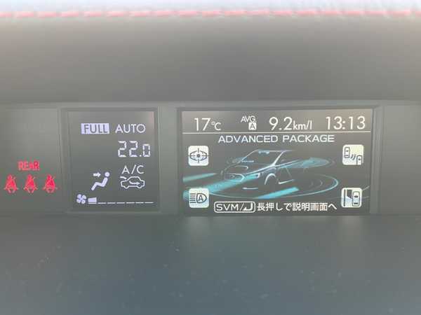 アイサイト/・プリクラッシュブレーキ(自動ブレーキ)/・アクティブレーンキープ/・ツーリングアシスト/・全車速追従機能付クルーズコントロール/・AT誤発進抑制制御/STiフロントリップスポイラー/スバルリアビークルディテクション/メーカーオプションナビ/(フルセグDVD/BT/MSV/SD)/バック&サイドカメラ/合皮シート/メモリ付き前席パワーシート/前席シートヒーター/パドルシフト/ドライブレコーダー/電動パーキングブレーキ/ブレーキホールド/ETC/LEDヘッドライト/フォグランプ/スマートキー/プッシュスタート