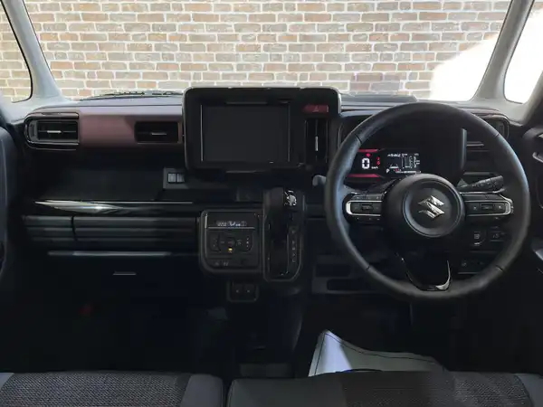 4WD/オプション ブラック2トーンルーフ/スリムサーキュレーター/ロールサンシェード/前席シートヒーター/ステアリングヒーター/マルチユースフラップ/両側パワースライドドア/スズキセーフティサポート/デュアルセンサーブレーキサポートII/車線逸脱抑制機能/アダプティブクルーズコントロール/車線維持支援機能/誤発進抑制機能/標識認識機能/先行車発信お知らせ機能/リヤパーキングセンサー/ハイビームアシスト/横滑り防止装置/アイドリングストップ/LEDヘッドライト/純正15インチアルミホイール