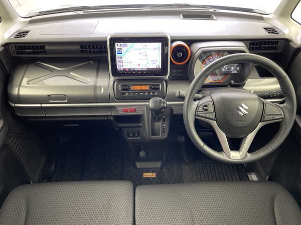 社外8インチSDナビ(CN-RZ843)/フルセグ/BT/DVD/USB/全方位モニター/スズキセーフティサポート/・デュアルカメラブレーキサポート/・車線逸脱警報/・全方位モニター/ヘッドアップディスプレイ/純正ドライブレコーダー/コーナーセンサー/合皮シート/前席シートヒーター/シートバックテーブル/両側パワースライドドア/ルーフレール/LEDオートライト/オートマチックハイビーム/フォグランプ/純正14インチAW/プッシュスタート