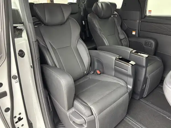 8人乗りタイプです。外観は他のタイプと比べてより重厚感が増して迫力があります。メッキがギラギラしているので、人によってはケバく感じるかもしれません。走行は静かでエンジンノイズやロードノイズを抑えています。ハイブリッドではなくガソリン車なのに結構静かです。2.5リッターある大きな見た目でも問題ない動力性能には驚きます。もっさり感はなくトルクも十分です。しいて言えばテールゲートが少々重いです。グレートによっては電動テールゲートにできますが手動式だと毎回重いです。設定できるなら電動にしたいですね。持ち手は高すぎず手をかけやすい位置にあるのは便利です。