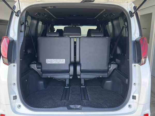 8人乗りタイプです。外観は他のタイプと比べてより重厚感が増して迫力があります。メッキがギラギラしているので、人によってはケバく感じるかもしれません。走行は静かでエンジンノイズやロードノイズを抑えています。ハイブリッドではなくガソリン車なのに結構静かです。2.5リッターある大きな見た目でも問題ない動力性能には驚きます。もっさり感はなくトルクも十分です。しいて言えばテールゲートが少々重いです。グレートによっては電動テールゲートにできますが手動式だと毎回重いです。設定できるなら電動にしたいですね。持ち手は高すぎず手をかけやすい位置にあるのは便利です。