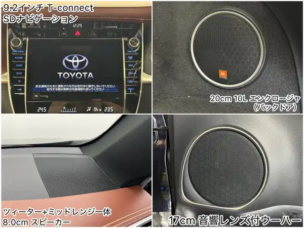 ガソリン/FF/MTモード付インパネCVT/純正 9インチナビ/(AM/FM/CD/DVD/Blu-ray/SDREC/SD/USB/Bluetooth/VTR/AUX/TV)/パノラミックビューモニター(シースルービュー機能付)/JBLプレミアムサウンドシステム(11スピーカー)/ドライブレコーダー 前後/ETC/Toyota Safety Sense/・プリクラッシュセーフティ/・レーンディパーチャーアラート(ステアリング制御付)/・アダプティブハイビームシステム/・レーダークルコン(全車速追従機能付)/・インテリジェントクリアランスソナー[パーキングサポートブレーキ(静止物)]/など/装備/・ハーフレザーシート/・パワーシート(D8way&電動ランバーサポート)/・電動チルト&テレスコピックステアリング/・パワーバックドア/・左右独立オートエアコン/・電子パーキングブレーキ&ブレーキホールド/・プッシュスタート/・ステアリングスイッチ/・LEDヘッドランプ&フロントフォグランプ/・純正18inAW/・取/ナビ取/・スマートキーx2、カードキーx1/・【OP】スペアタイヤ/など