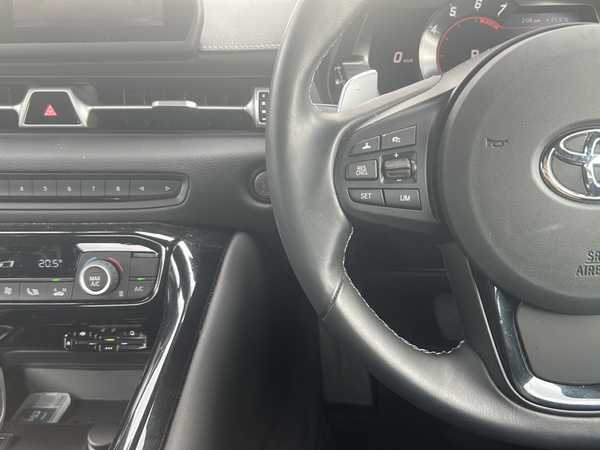 /禁煙車/ワンオーナー//純正ナビ・フルセグTV//Bluetooth/ETC//バックカメラ//純正ドライブレコーダー/ (DRT-H68A)//ToyotaSupraSafety//プリクラッシュセーフティ//レーンディパーチャーアラート//ブラインドスポットモニター//クリアランスソナー//アダプティブハイビーム//レーダークルーズコントロール/ (全車速追従機能)//リアクロストラフィックアラート//ヒルスタートアシストコントロール//本革3本スポークステアリング//ステアリングスイッチ//パドルシフト//電動パーキング//アイドリングストップ//6灯LEDオートライト//LEDリアフォグランプ//電動格納ミラーウィンカー//純正17インチアルミ//プッシュスタート//フロアマット//取扱説明書/新車保証書//スペアキー