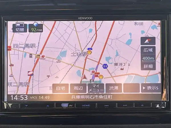 社外SDナビ/CD/DVD/ETC/LEDヘッドライト/ワンセグTV/オートライト/横滑り防止装置/衝突軽減ブレーキ/スイッチスタート/前後コーナーセンサー/パワーステアリング/パワーウィンドウ/純正フロアマット